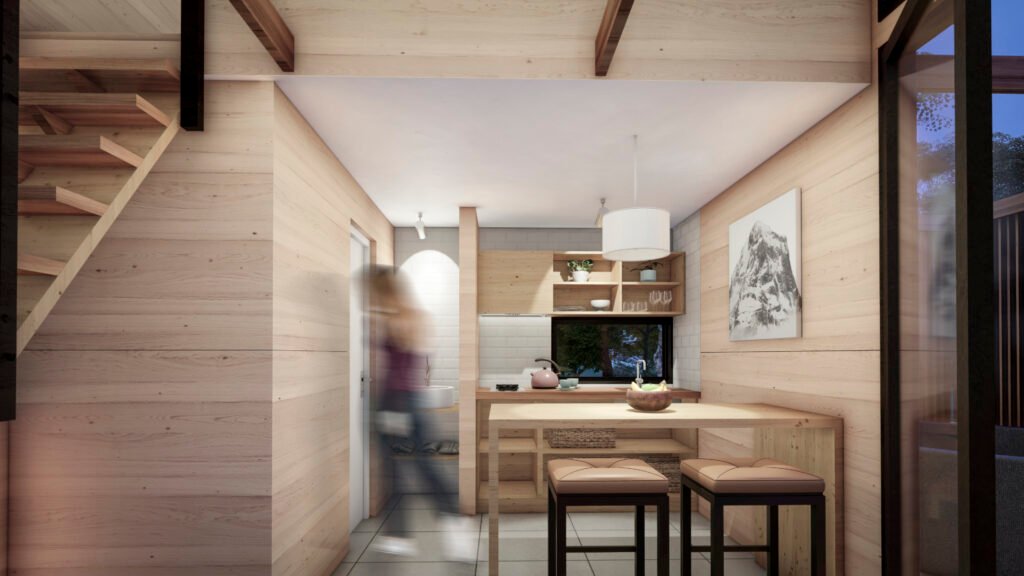 Its simple architecture focuses on efficiency. By using optimized spaces, smart furniture, and durable, low-maintenance materials, it creates a balance between form and function, while also lowering construction time and costs.